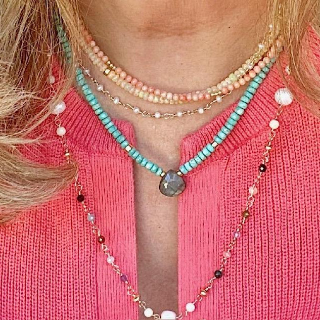 Beautiful sparkly shell rondelle necklace. A little stunner for the "barely there" minimalist look and great piece for delicate layering. Length about 16"